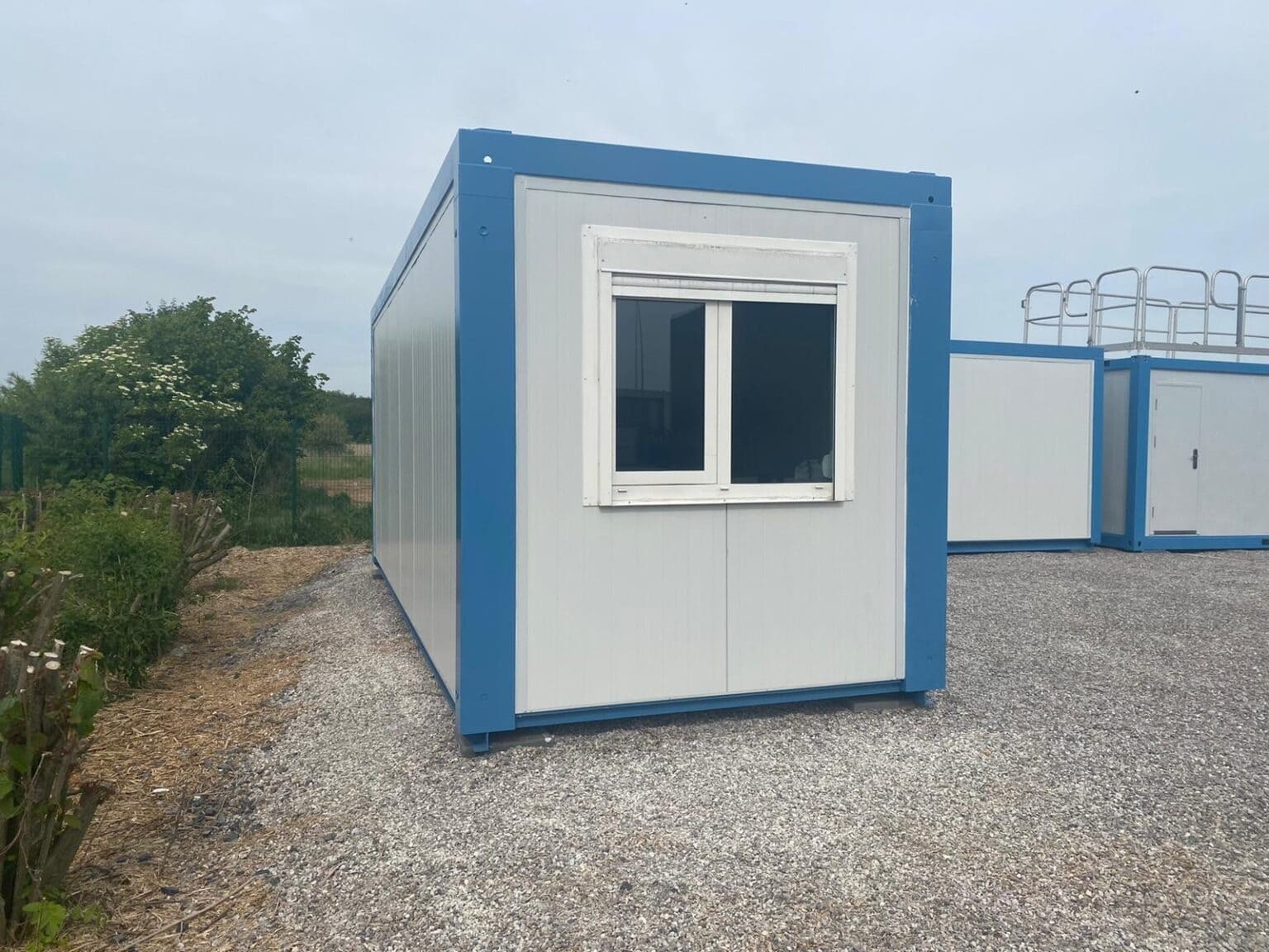 Idéal pour un bureau de chantier, réfectoire de chantier, vestiaire de chantier, abri de jardin ou bureau (un espace de vie confortable). Découvrez ce conteneur Algeco d’une superficie totale de 15M2.