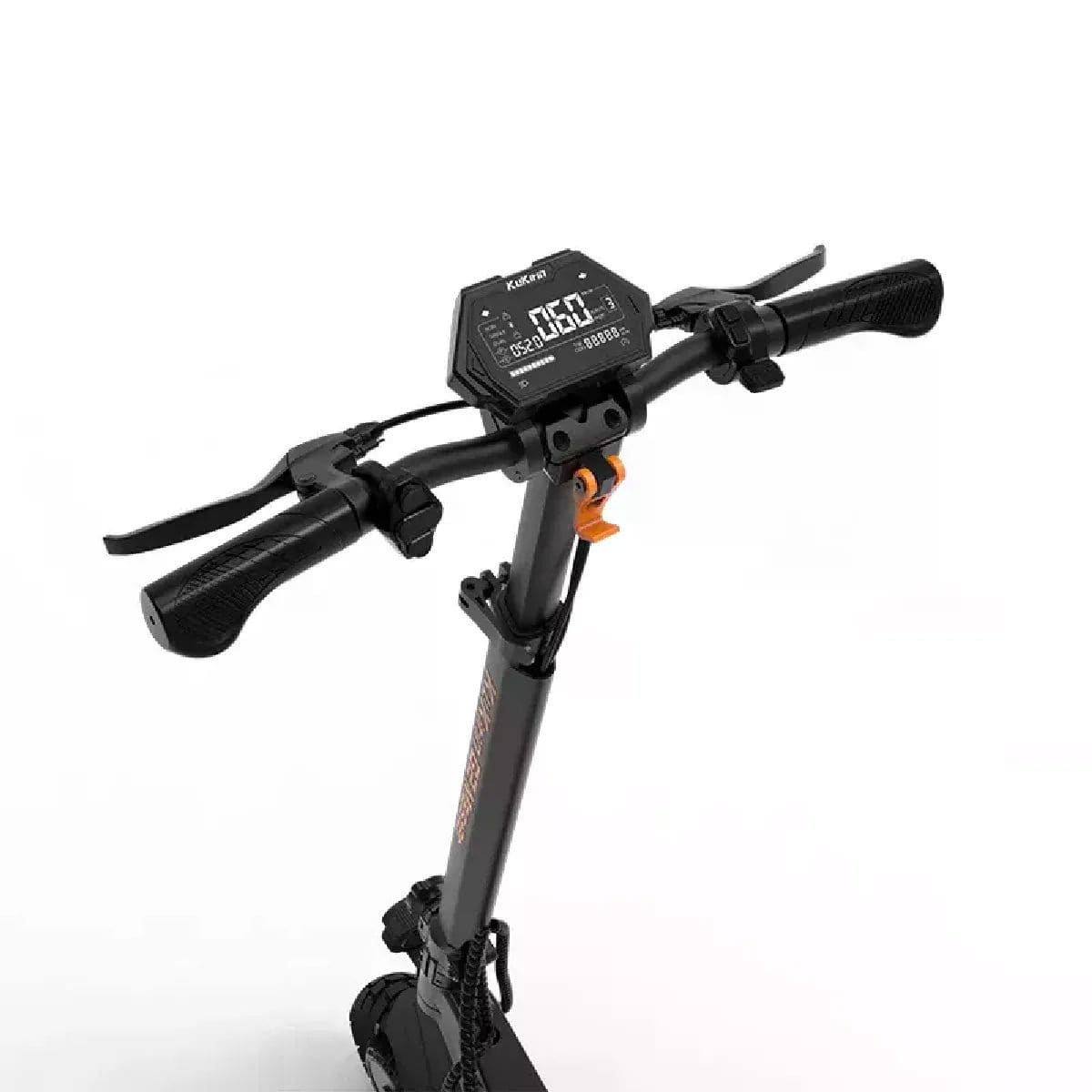 Malgré sa puissance et son équipement haut de gamme, la KuKirin G2 Master reste très maniable et bien équilibrée. Sa potence réglable s’adapte à différentes tailles d’utilisateurs, assurant un bon confort de conduite. Grâce à sa béquille latérale, elle se stationne facilement et sans risque de chute. Son design noir, sobre et futuriste, lui donne une allure moderne et robuste.