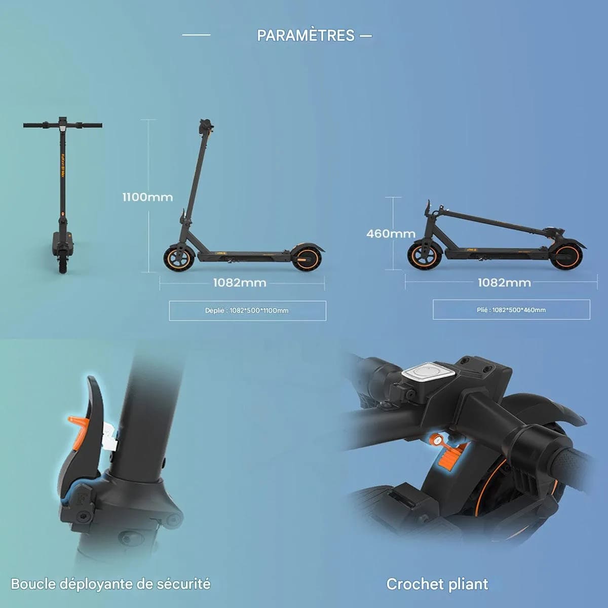 La Kukirin S1 Max affiche un design solide et compact, pensé pour durer dans le temps. Sa structure en fer robuste lui confère une excellente résistance aux chocs, aux vibrations et à l’usure quotidienne. Que vous l’utilisiez pour vos trajets quotidiens ou pour des balades régulières, elle reste performante et fiable, même dans des conditions exigeantes.