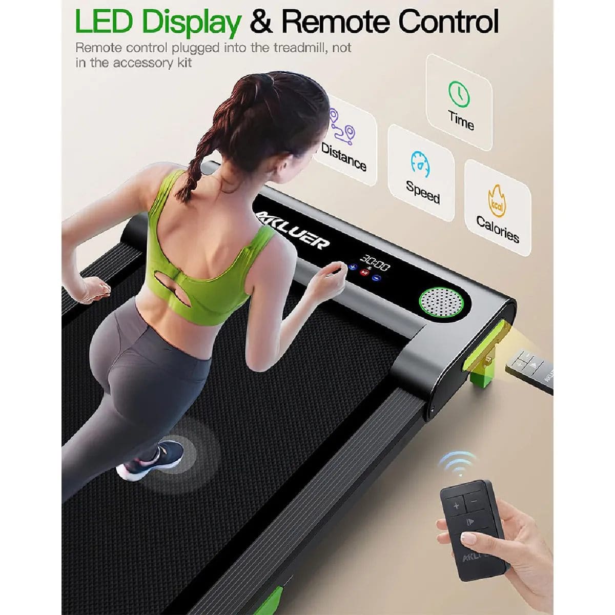 Tapis de marche pliable Akluer : Fonctionnalités intuitives (écran LED et télécommande pour un suivi précis et une commande rapide)