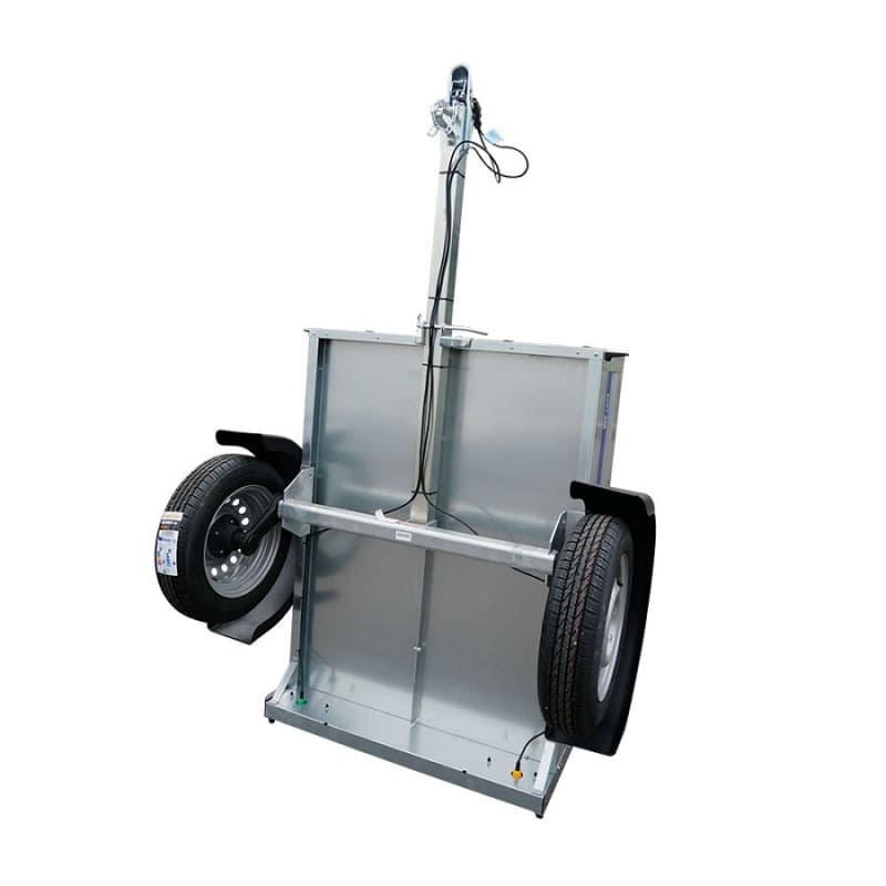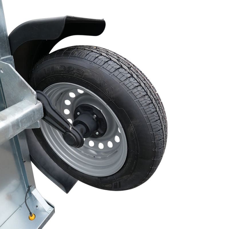 La remorque est équipée d’un timon droit, qui offre une excellente stabilité lors de la traction. Ce type de timon permet également un meilleur équilibre de la charge, réduisant le risque de balancement à vide ou en charge. Elle est montée sur deux roues 135R13, fiables et résistantes, assurant une bonne tenue de route et une conduite confortable, même à pleine charge.