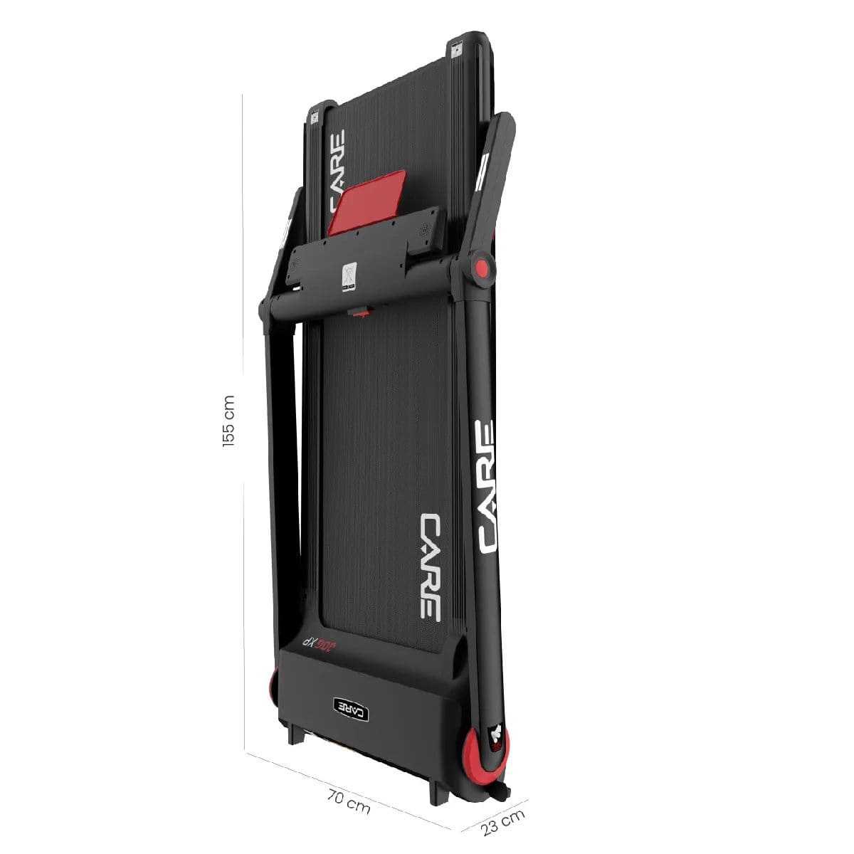 Le Care JOG XP a été pensé pour s’intégrer dans tous les intérieurs. Il se plie rapidement grâce à un levier mécanique. Une fois replié, il ne mesure que 23 cm d’épaisseur. Vous pouvez le glisser contre un mur ou sous un lit. Sa compacité le rend idéal pour les petits logements. Même dans un studio, il trouve sa place. Vous gagnez en espace sans renoncer à vos entraînements.