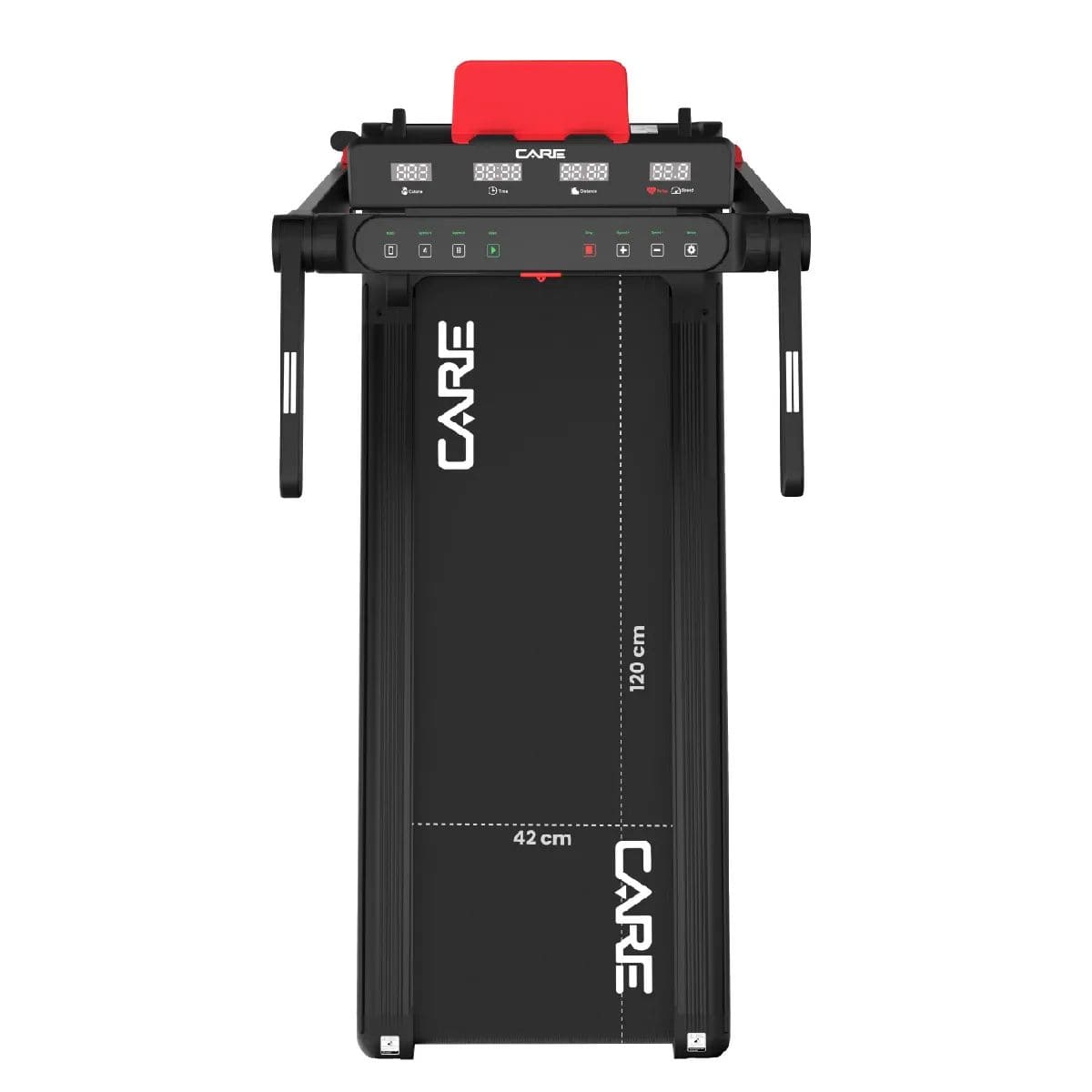 Le Care JOG XP est équipé d’une console facile à utiliser. Elle affiche les données importantes en temps réel. Vous pouvez suivre le temps écoulé de votre séance. La distance parcourue apparaît clairement sur l’écran. Vous voyez aussi votre vitesse actuelle avec précision. Le compteur calcule les calories brûlées pour mieux gérer vos objectifs. Un capteur intégré mesure votre fréquence cardiaque. Cette information vous aide à contrôler votre effort.