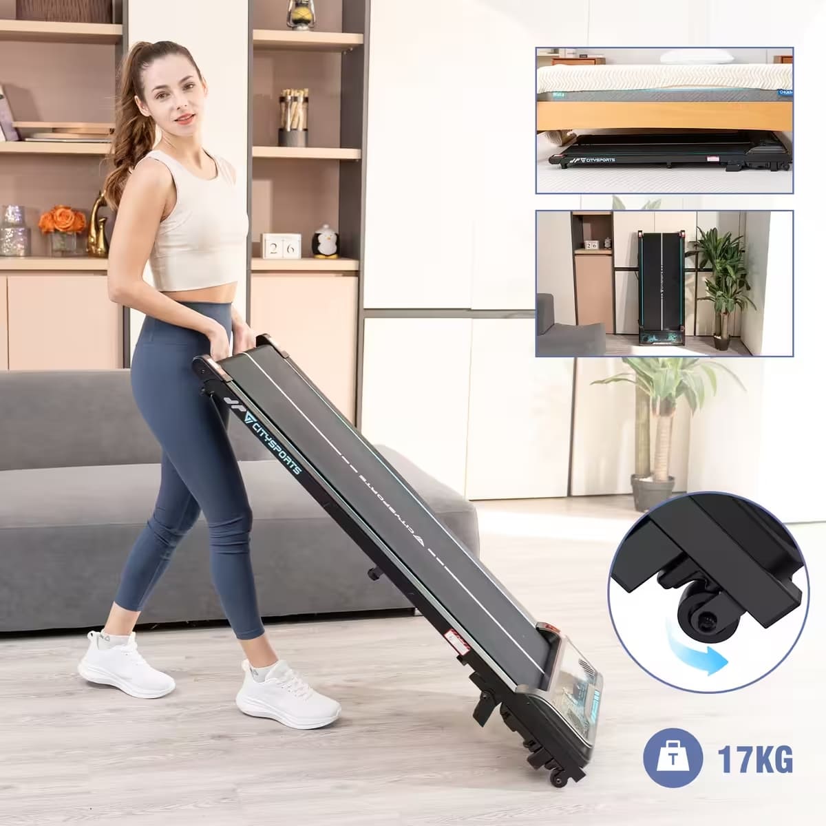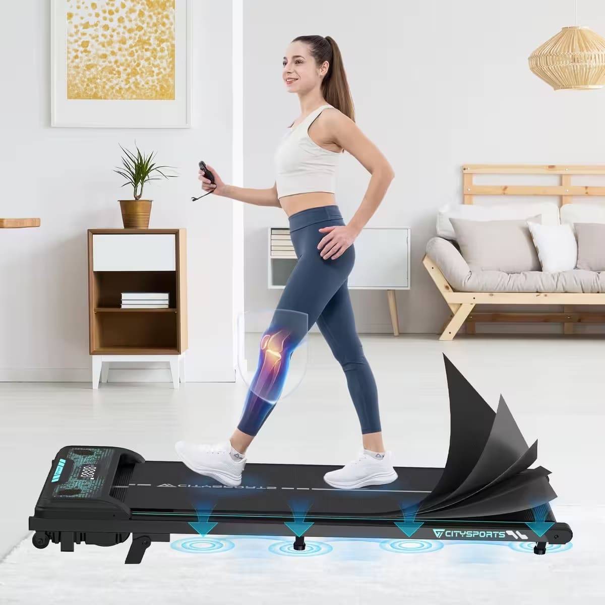 Le tapis de course CITYSPORTS WP6 s’appuie sur un moteur électrique puissant de 440 W. Ce moteur performant garantit une utilisation régulière, stable et durable. Il fournit une puissance suffisante pour des séances de marche rapide ou de course modérée, à une vitesse ajustable entre 1 et 6 km/h. Grâce à cette plage étendue, il répond à différents objectifs, du simple entretien à l’amélioration du cardio.
