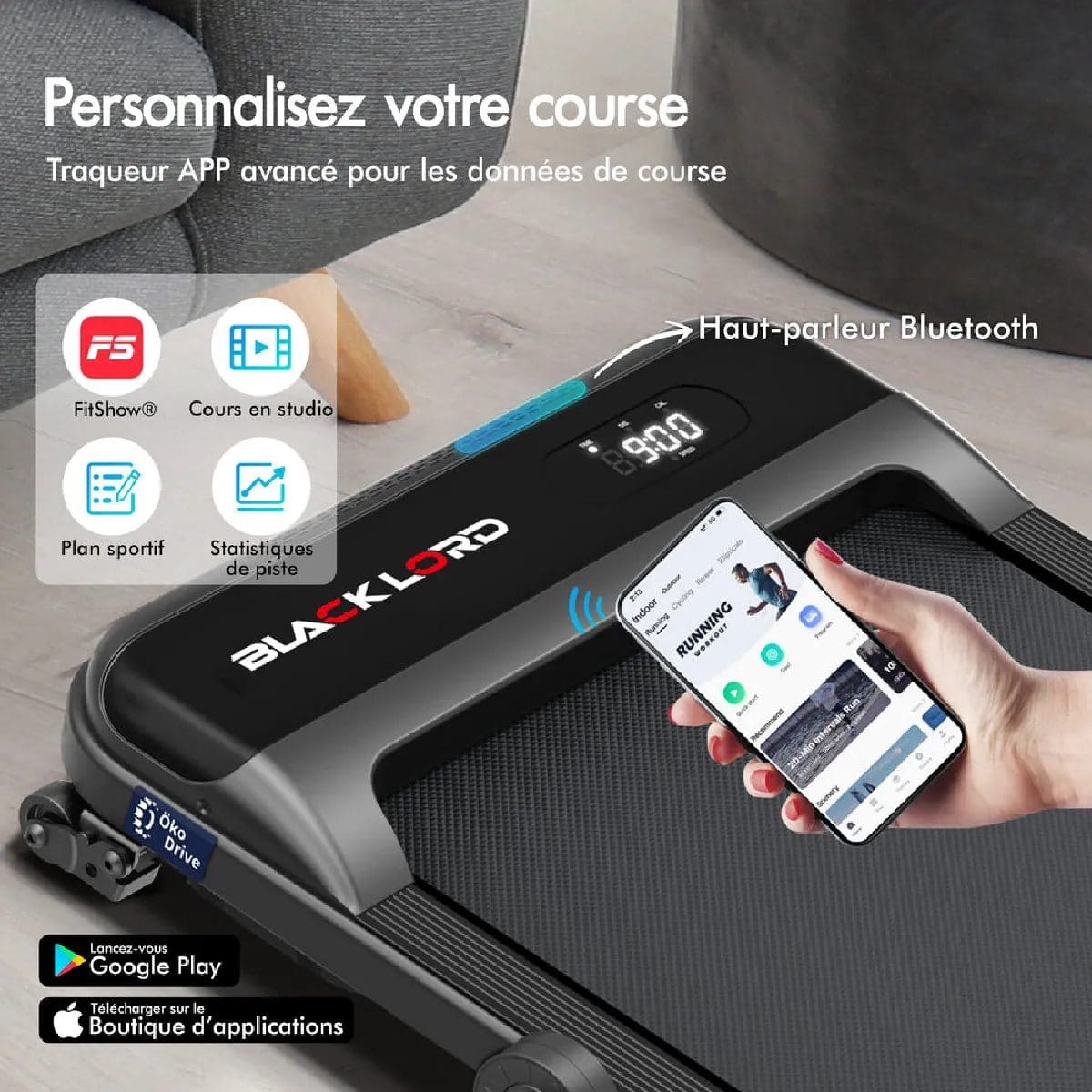 Tapis de course pliable Black Lord Noir – Moteur 3.2 CV – Inclinaison 2 niveaux – Bluetooth intégré
