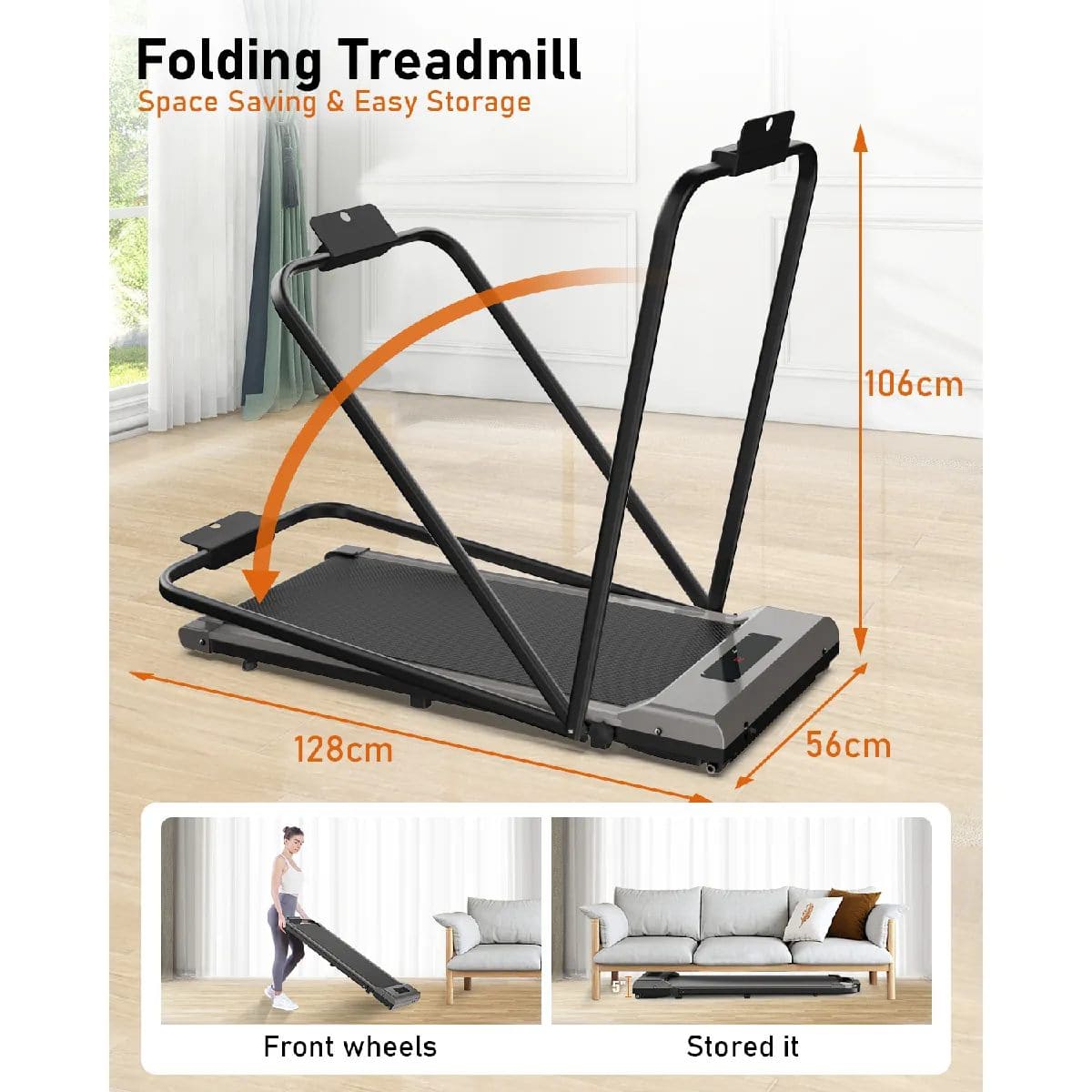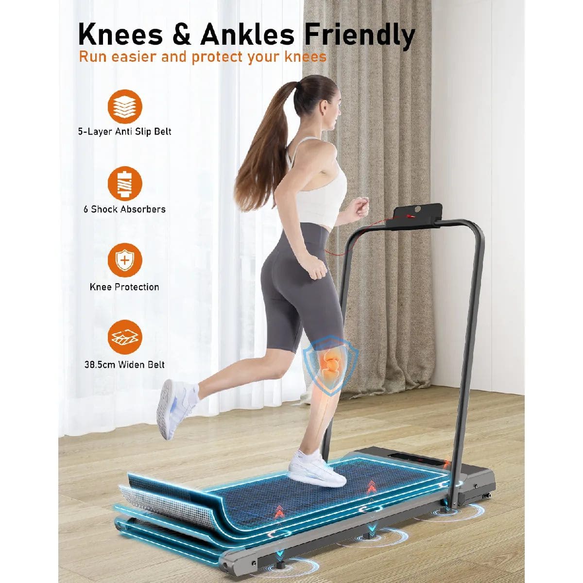 Tapis de course silencieux : Accoudoirs pliables et rangement facile