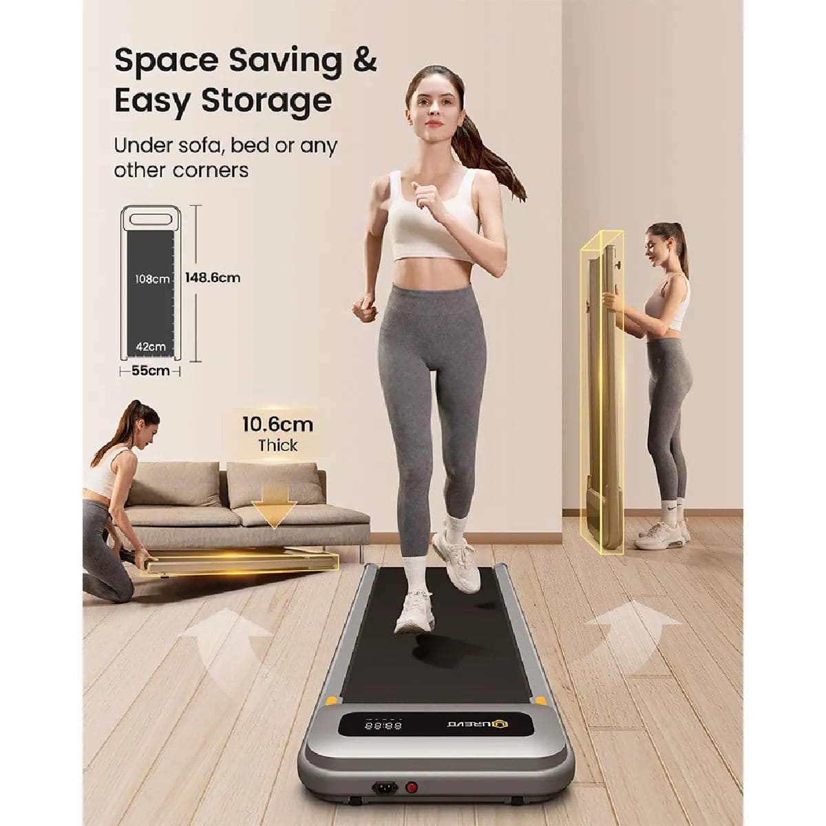 Tapis de course compact Urevo U1 : Conception compacte et portable pour un usage flexible à domicile