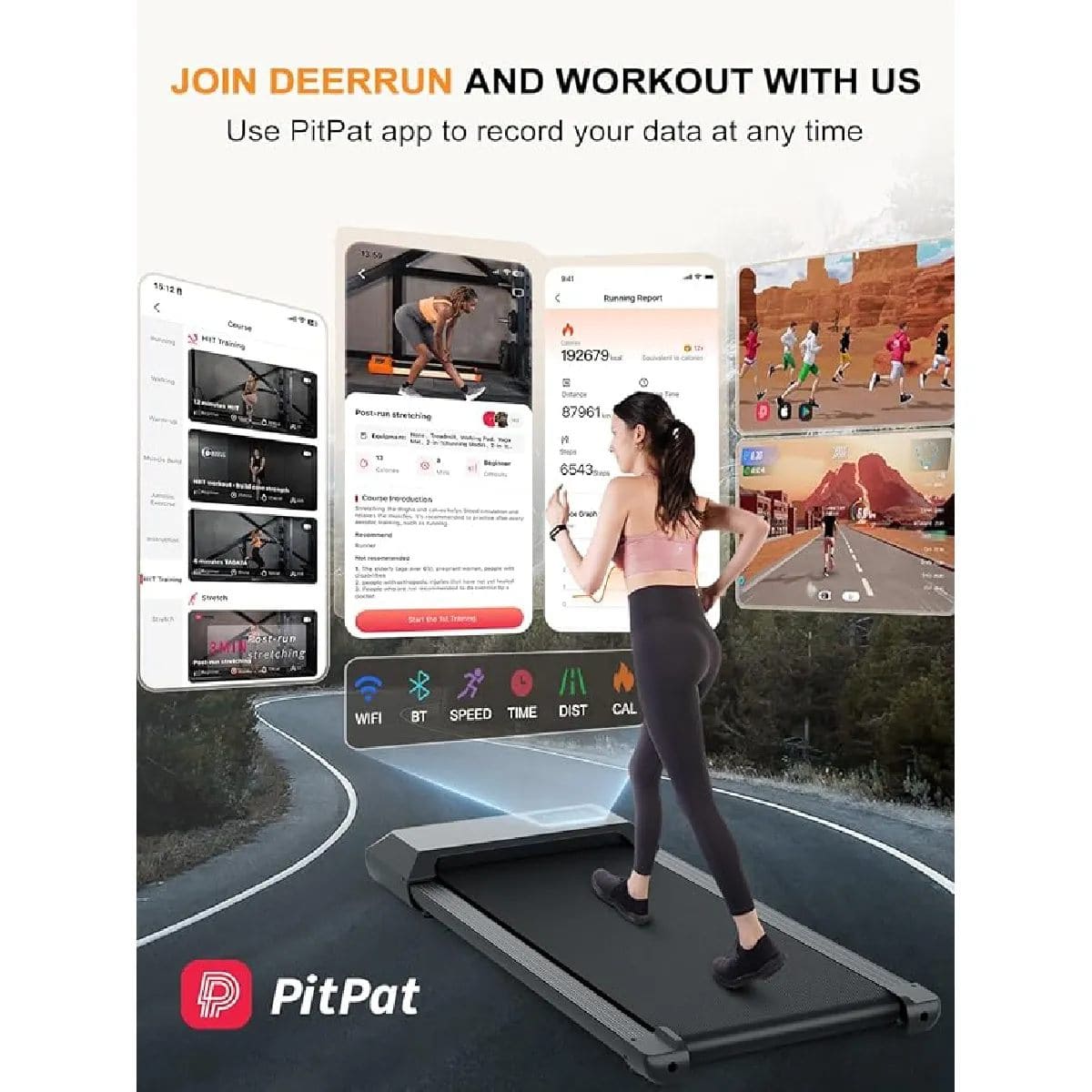 Le Deerrun ne se limite pas à un tapis classique : il vous embarque dans une nouvelle façon de faire du sport, plus sociale et plus motivante. Grâce à sa compatibilité avec une application dédiée, votre séance ne se vit plus en solo. Vous rejoignez une plateforme interactive où les objectifs personnels se mêlent à l’énergie collective d’une communauté active.
