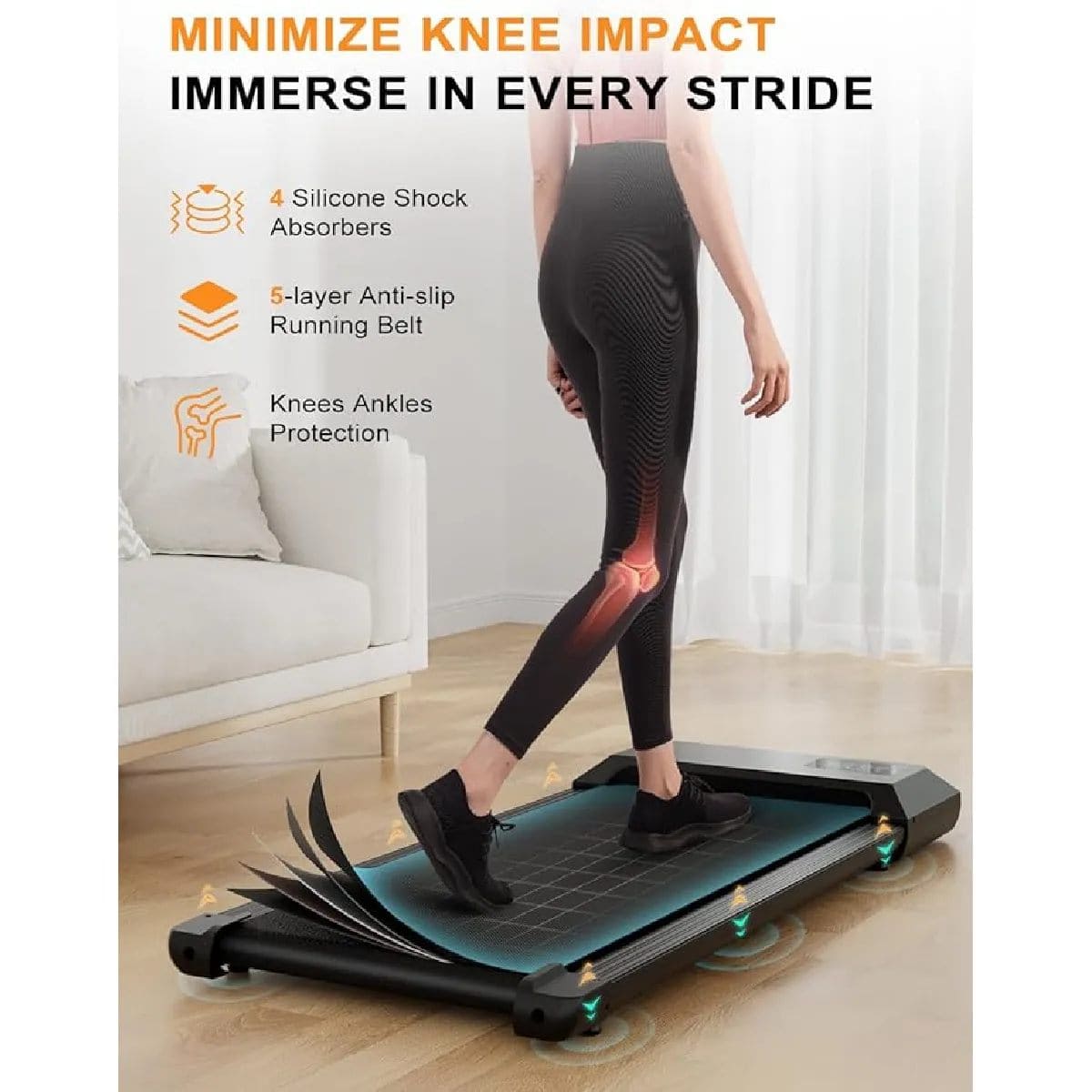 Tapis marche pliable connecté Deerrun : Une marche fluide et agréable : stabilité renforcée et confort sous les pieds