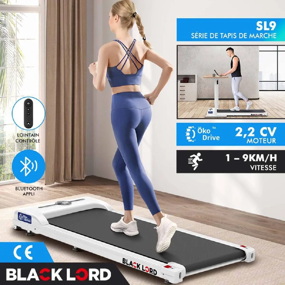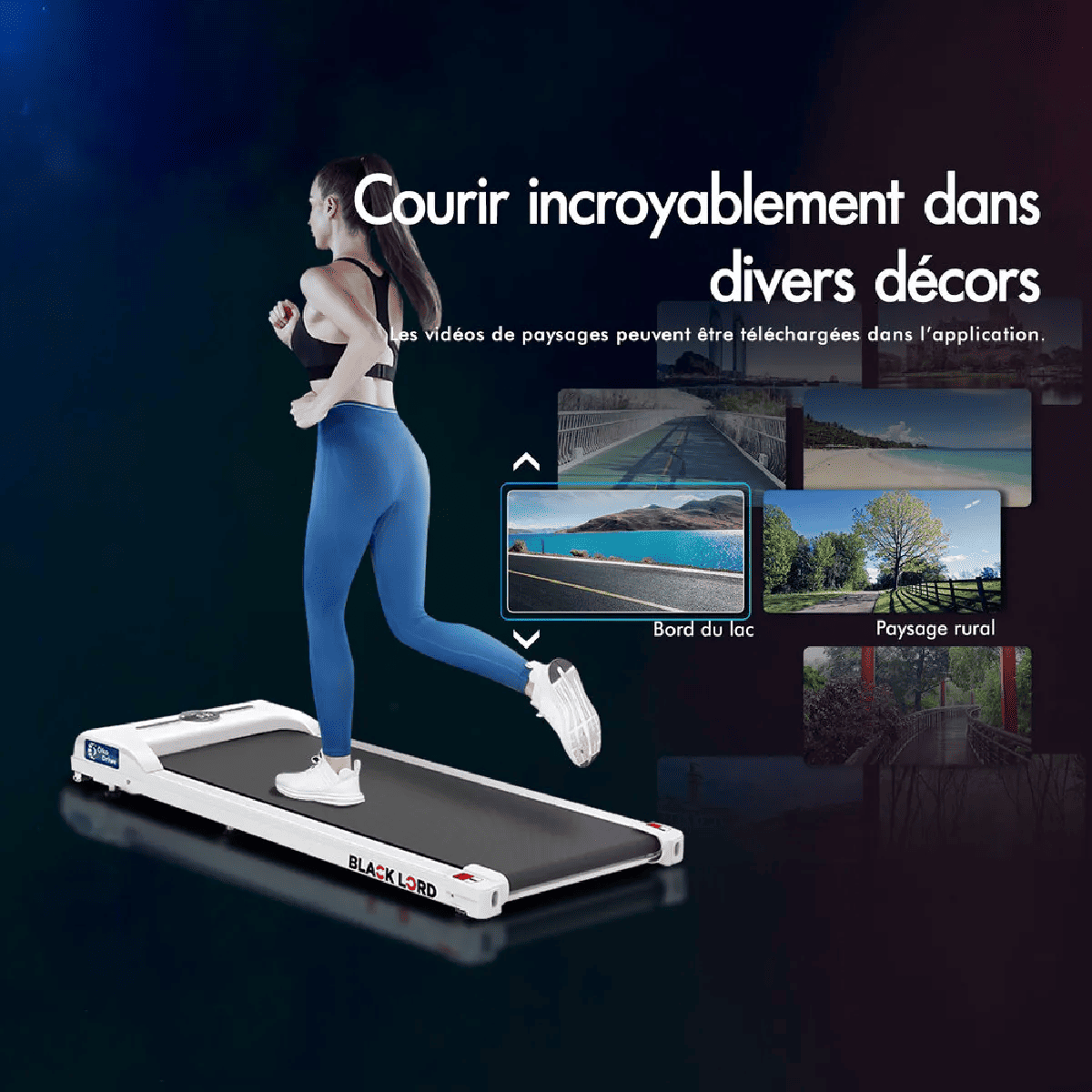 Tapis de marche électrique Black Lord SL9 – Moteur 2,2CV – Télécommande – Bluetooth – 1 à 9 km/h – Blanc