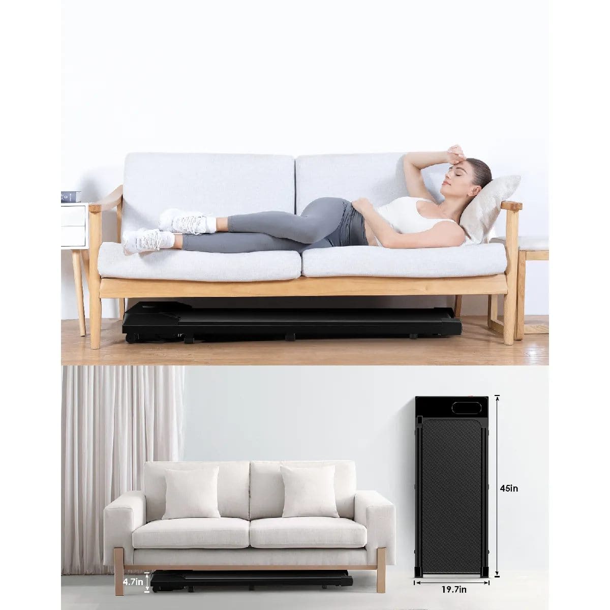Le DSKEUZEEW Walking Pad se distingue par sa compacité exceptionnelle. Avec des dimensions de seulement 114,5 cm de long, 50 cm de large et 12 cm de hauteur, il se glisse sous la plupart des meubles bas. Que ce soit un lit, un canapé ou un bureau, il trouve toujours sa place. Vous gagnez en mobilité sans sacrifier d’espace.
