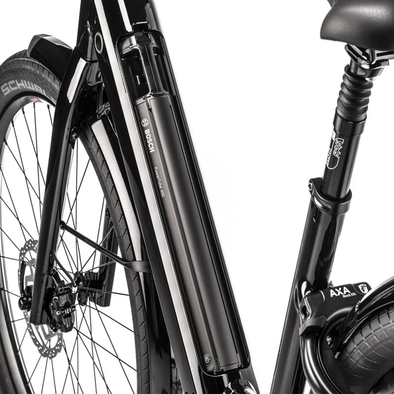 | Batterie | Bosch PowerTube 400 Wh, Li-ion, 36 V / 11,1 Ah, chargeur Bosch 2A (clé identique à l’antivol) |