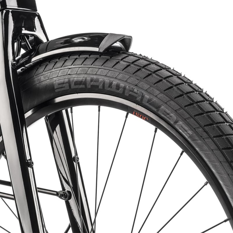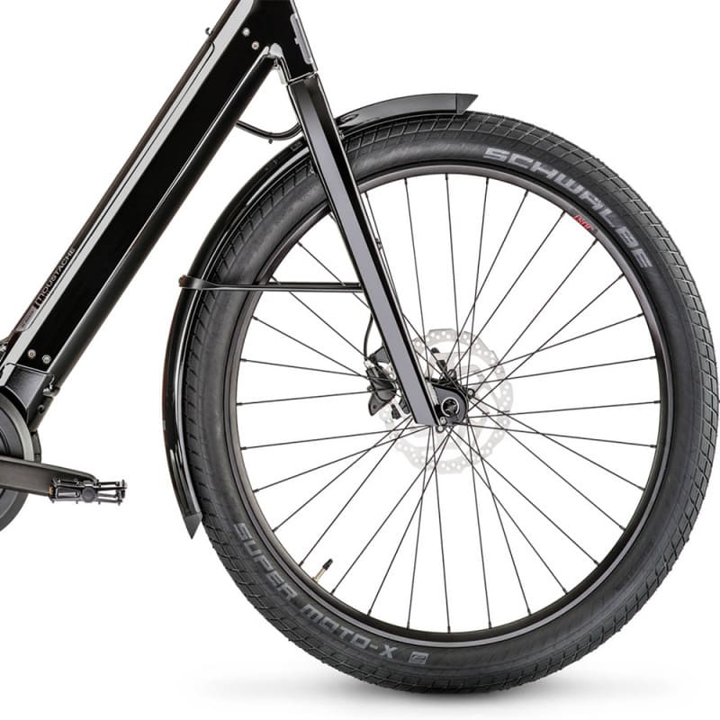 Les pneus Schwalbe Super Moto-X de 27.5″ x 2.4 assurent une excellente adhérence. Ils sont particulièrement adaptés aux surfaces urbaines et absorbent bien les chocs.
