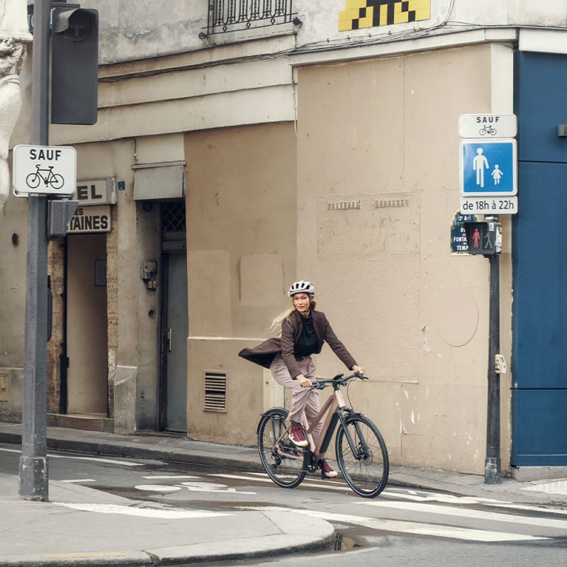 Le système de transmission externe est idéal pour un usage urbain. Il offre de la polyvalence, ce qui permet de rouler sur différents types de terrain. Pour ceux qui préfèrent moins d’entretien, des versions alternatives comme le modèle Silent (moyeu Alfine) ou Vario (moyeu Enviolo) sont également disponibles. Ces options offrent moins de maintenance tout en garantissant un confort optimal de conduite.