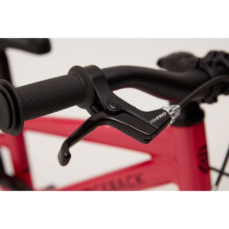 Le vélo enfant 14 pouces Ridgeback Dimension 14 met l’accent sur la sécurité, avec un système de freinage adapté aux jeunes enfants. Il utilise des freins sur jante de type V-Brake, positionnés à l’avant et à l’arrière. Ce dispositif offre une puissance de freinage progressive et bien dosée. L’enfant peut ainsi moduler sa vitesse sans blocage brutal.