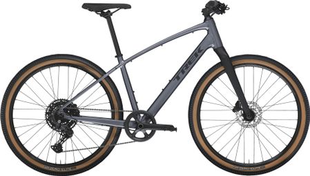 Les roues larges tubeless ready Bontrager Kovee 650b et les pneus 50c vous assurent performance et confort sur tous les terrains. La transmission monoplateau à 10 vitesses Shimano CUES est simple et solide. Sa cassette à large plage 11-48 dents vous permet de gravir les côtes avec aisance et de rouler vite sur le plat.