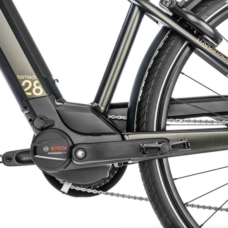 Au cœur du Moustache Samedi 28.4 se trouve un moteur Bosch Performance Line de dernière génération. Ce système d’assistance électrique développe un couple maximal de 75 Nm, offrant des démarrages dynamiques et une réactivité impressionnante. Que vous soyez en ville, en côte ou sur route vallonnée, ce moteur assure un pédalage fluide, naturel et puissant, même lorsque le vélo est chargé.