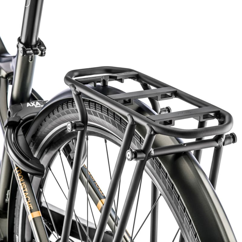 Le porte-bagages arrière, compatible MIK HD et Ortlieb QL3, accueille facilement paniers, sacoches ou sièges enfants. Il permet d’adapter le vélo à toutes les situations du quotidien. Vous transportez vos affaires sans compromis sur la sécurité.