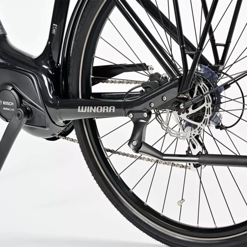 Le cadre bas du Winora Tria X7 est l’une de ses plus grandes forces. Il permet de monter et descendre du vélo sans effort, ce qui est particulièrement rassurant pour les personnes âgées, les débutants ou toute personne en quête de confort. Cette conception facilite également les arrêts fréquents en ville, notamment aux feux ou en cas de circulation dense. Monter en selle devient naturel et sans contrainte, quel que soit l’habit ou la condition physique du cycliste.