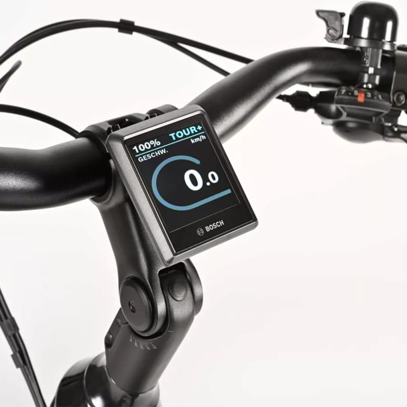 Le Winora Tria X7 n’est pas qu’un simple VTC électrique : il s’intègre pleinement dans l’ère du vélo connecté. Grâce au Bosch Smart System, vous bénéficiez d’un environnement numérique riche et évolutif. L’écran Intuvia 100, monté au centre du guidon, affiche les données essentielles comme la vitesse, l’autonomie ou le mode d’assistance. L’interface est claire, intuitive, avec un contraste élevé lisible en plein soleil.