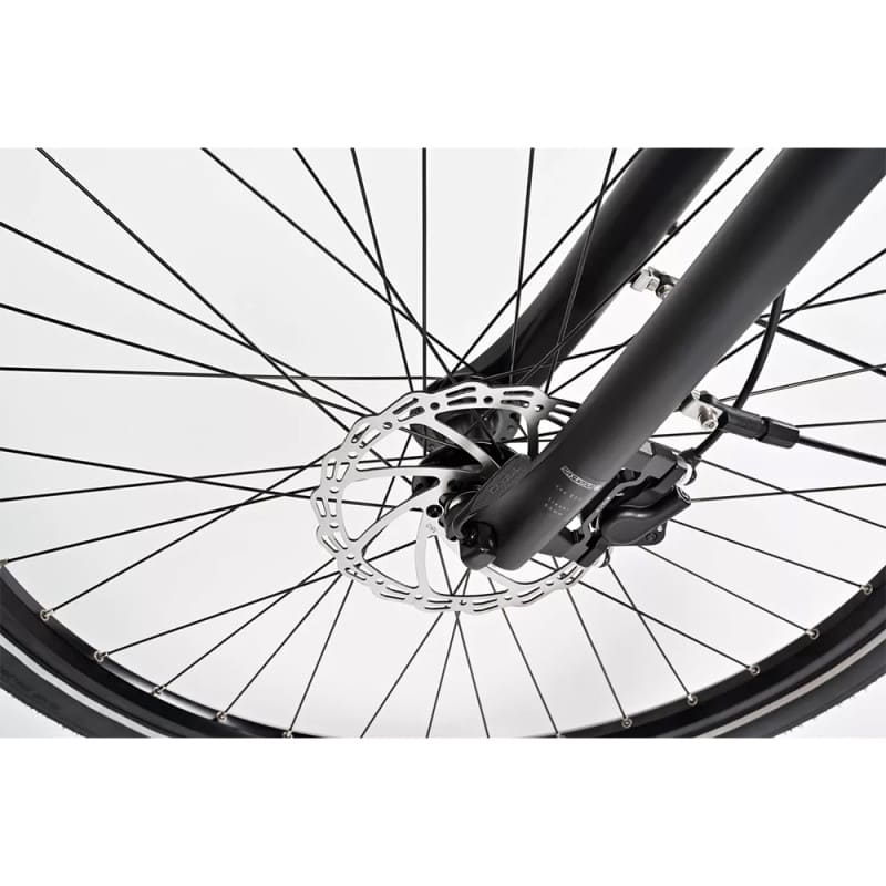 Avec sa transmission Shimano Altus à 7 vitesses, le Tria X7 s’adapte à tous les profils de terrain. Le changement de vitesses est fluide, rapide et intuitif, même pour les utilisateurs débutants. Le grand pignon de 34 dents vous aide à franchir les côtes sans forcer. En descente ou sur plat, vous trouvez facilement le bon rythme. Ce système simple mais efficace participe pleinement à la polyvalence du vélo.