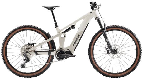 Le Trek Powerfly FS+ 6, un VTTAE tout suspendu, conçu pour vos aventures en montagne. Il offre un débattement de 130 mm à l’avant et 120 mm à l’arrière, garantissant confort et contrôle sur les sentiers difficiles.