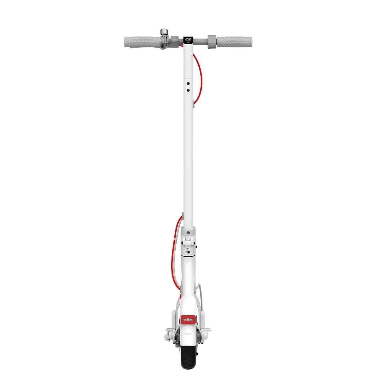 Le cadre en aluminium assure à la fois légèreté et robustesse. Malgré son poids réduit, la trottinette supporte un poids maximum de 100 kg, suffisante pour la majorité des utilisateurs adultes. Sa finition blanche apporte une touche élégante et moderne. Son design ergonomique garantit un bon équilibre et une prise en main confortable, même lors de trajets plus longs.